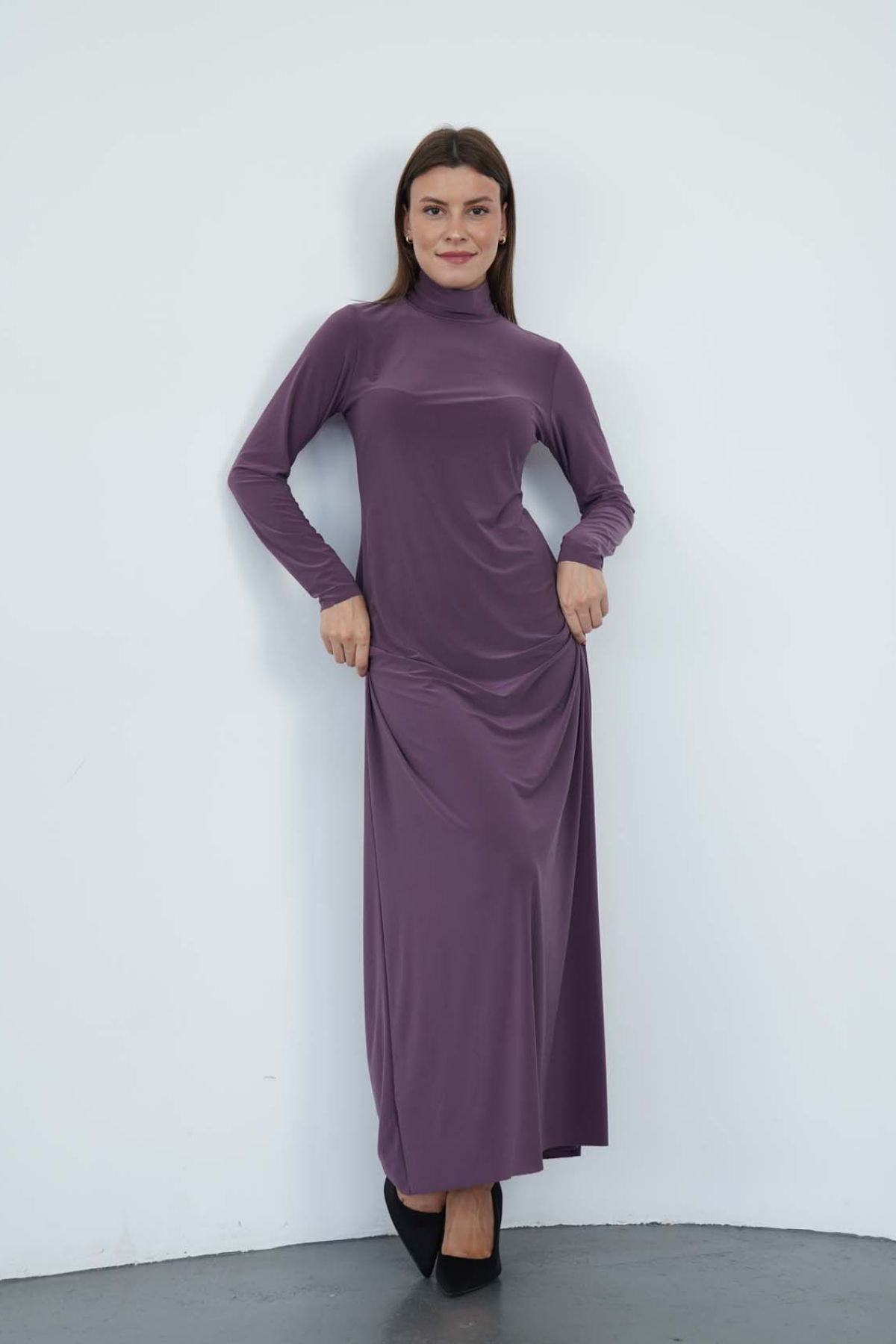 Dora Kadın Maxi Boy Balıkçı Yaka Sandy Elbise-Gül Kurusu