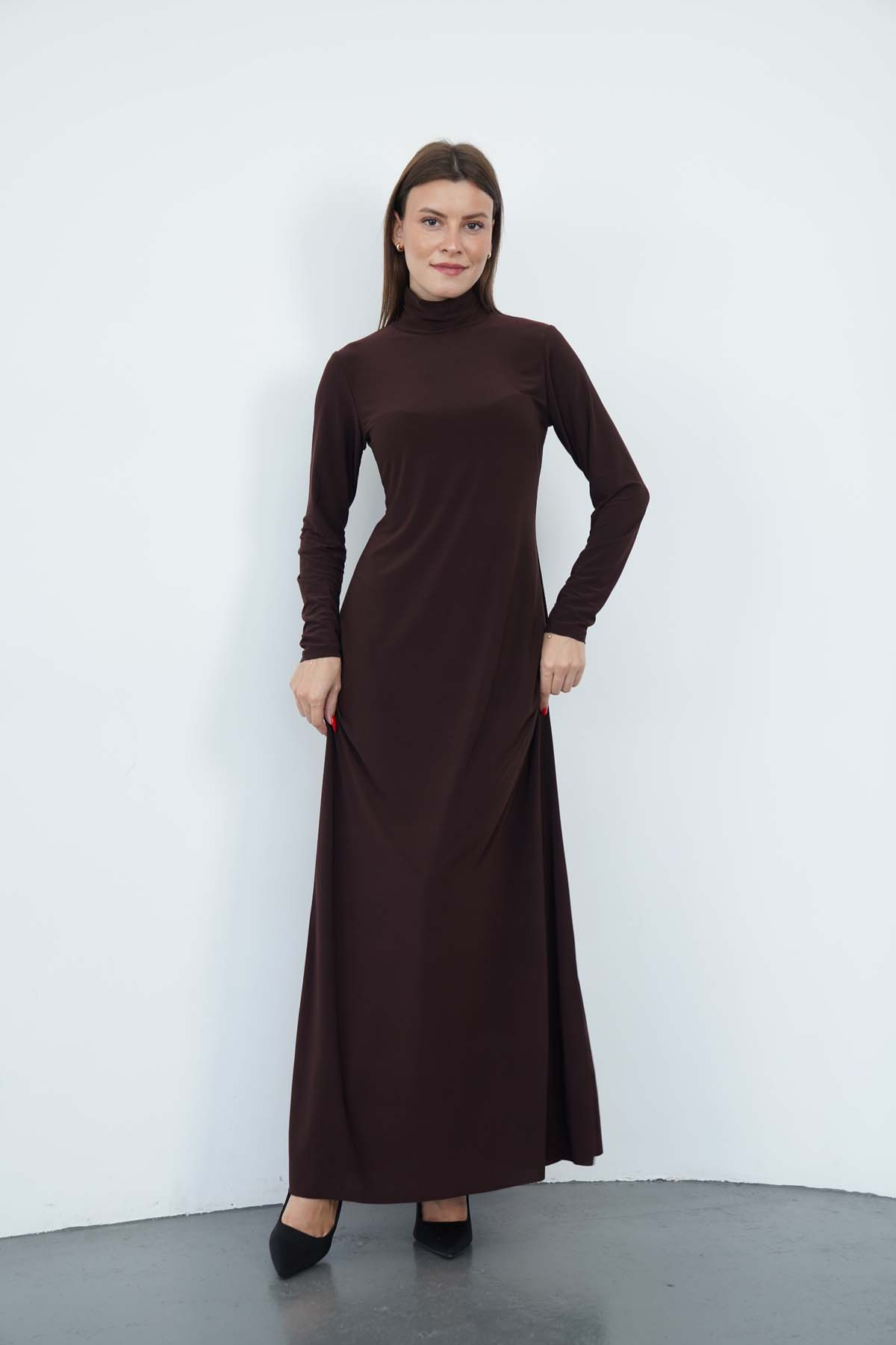 Dora Kadın Maxi Boy Balıkçı Yaka Sandy Elbise-Kahverengi