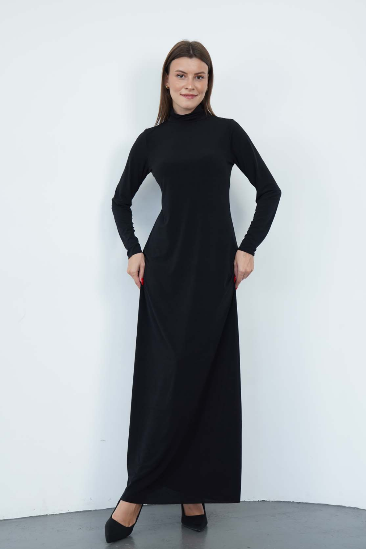 Dora Kadın Maxi Boy Balıkçı Yaka Sandy Elbise-Siyah