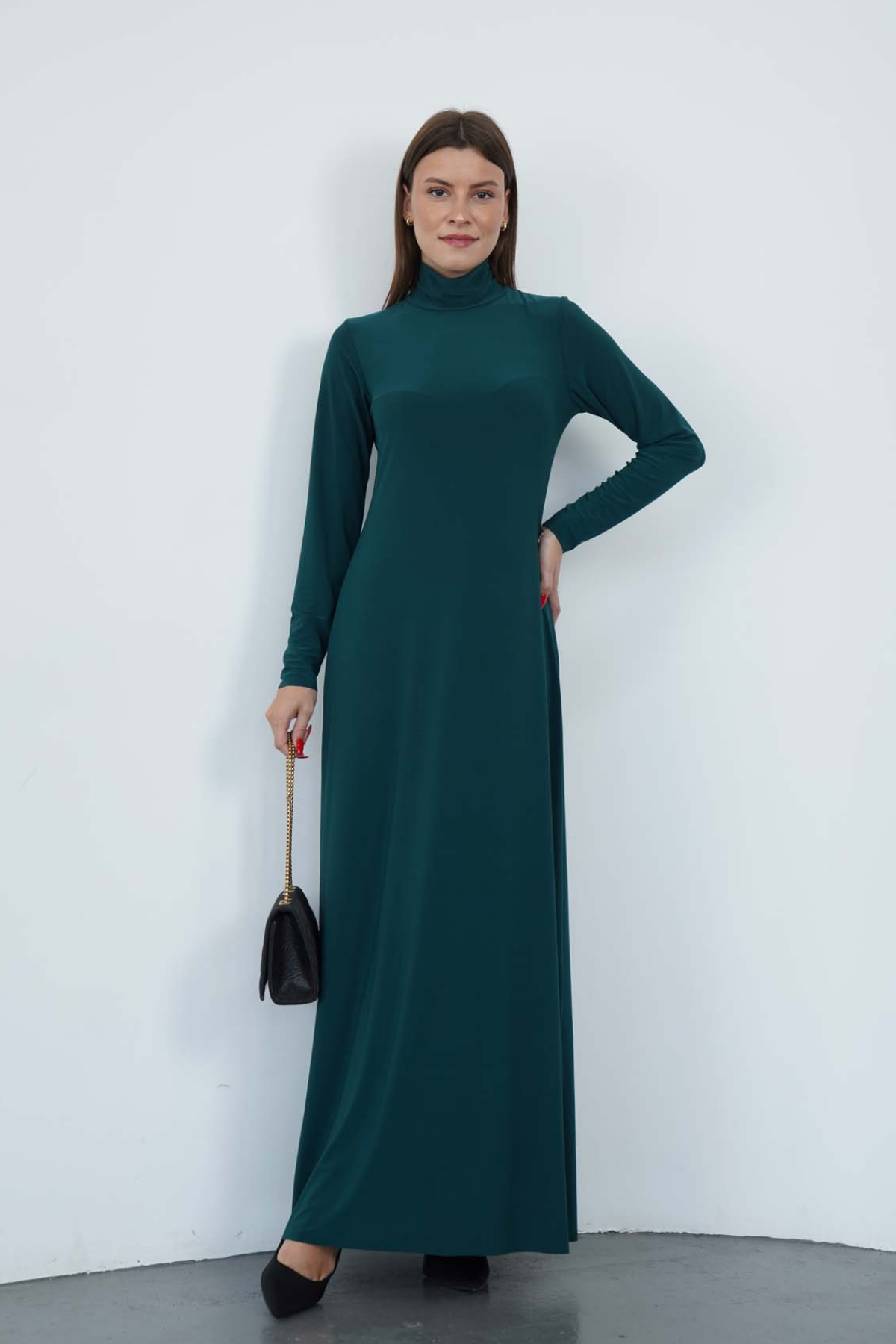 Dora Kadın Maxi Boy Balıkçı Yaka Sandy Elbise-Zümrüt Yeşil